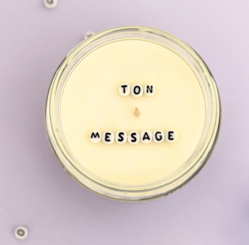 ✨ Un concept unique : chaque bougie artisanale cache un message personnalisé, gravé sur des perles de verre, qui se révèle progressivement à la flamme. Entièrement faite à la main avec passion, elle est le cadeau idéal pour surprendre vos proches 💝.